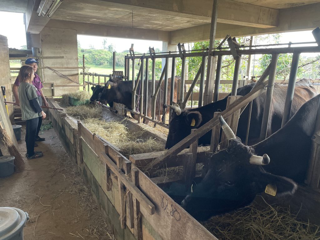 旦那さんの政彦さんが面倒を見る宮古牛の糞とバガスをミックスして、半年〜1年かけて発酵させた後に畑の肥料として使っているところに秘密があります。牛さん達が食べる牧草も自分達の広い敷地内で育つ草を刈り取ってあげている素晴らしい環境!
