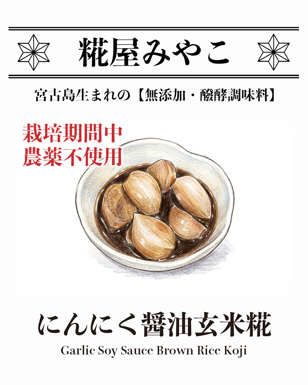 宮古島産無農藥にんにくと有機醤油と合わせました🤝💕 お肉や野菜にちょいのせしたり、とっても使いやすい糀です✨
