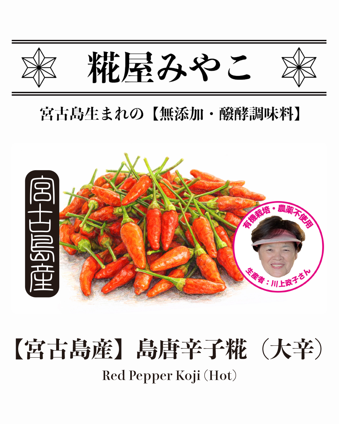 原材料:国産米麹・海水塩(沖縄県産)・ 農薬不使用島唐辛子(宮古島産)